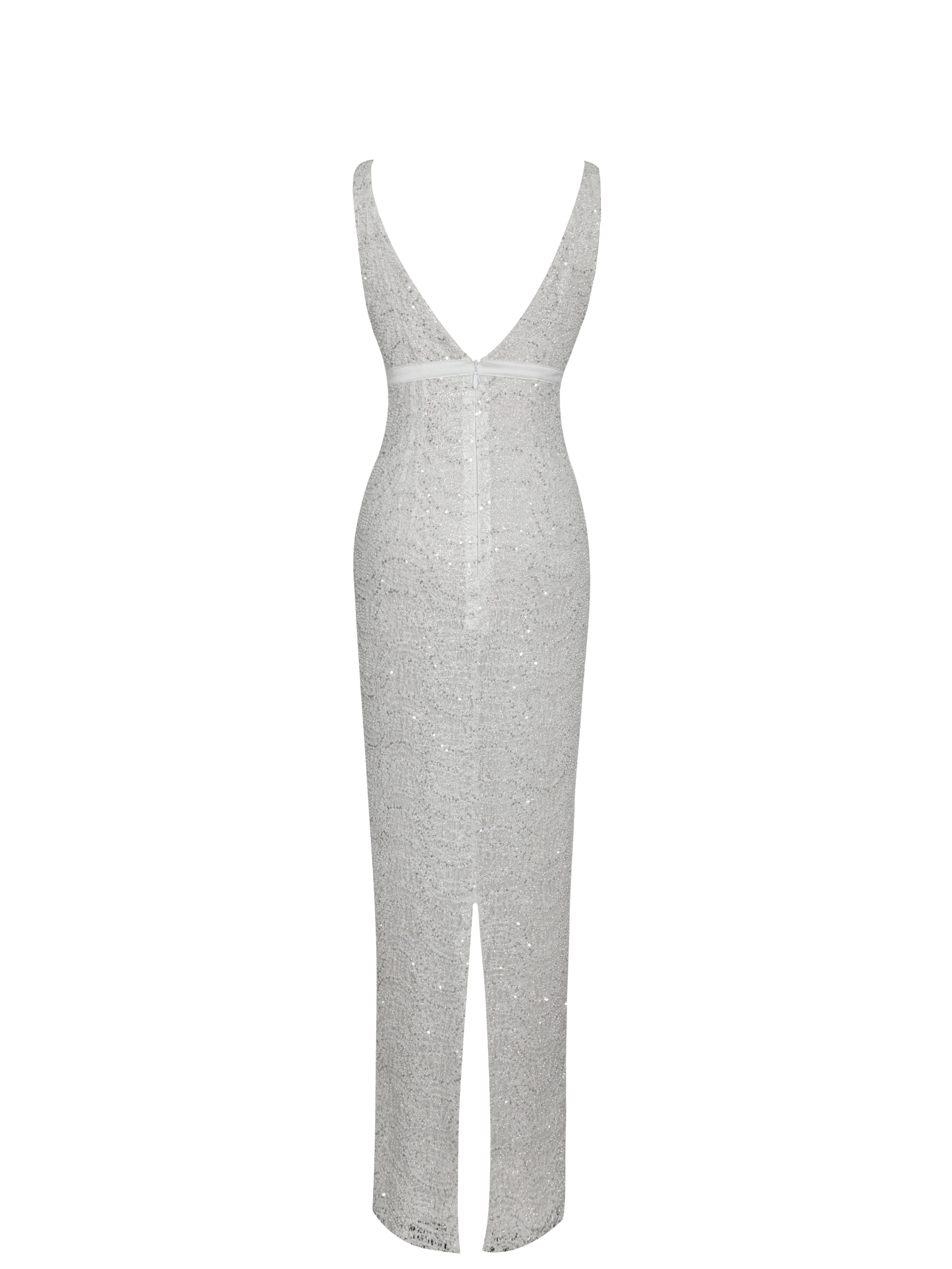 Adelaide White Beaded Sequin Net Bodycon Gown