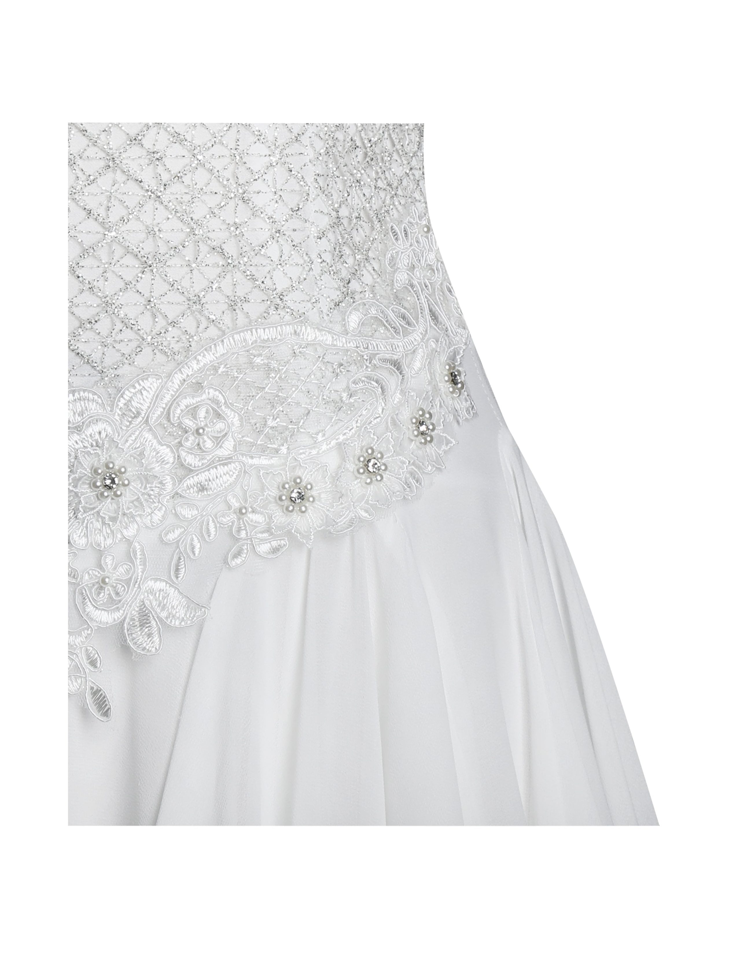 Fabiola Lace Trim Silver Net Top Mini Flare Chiffon Dress