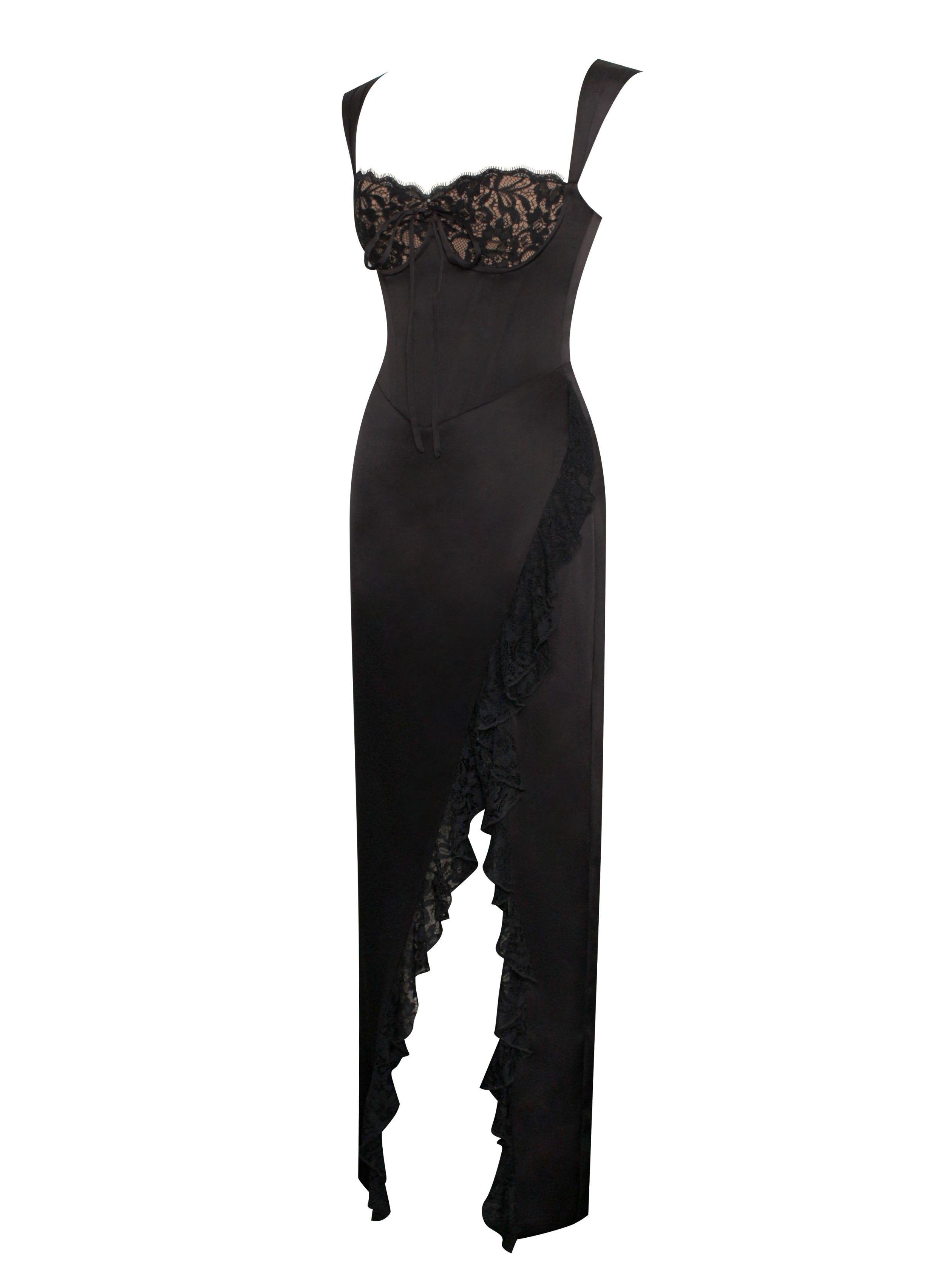 Freddie Black Lace Satin Maxi Corset Dress