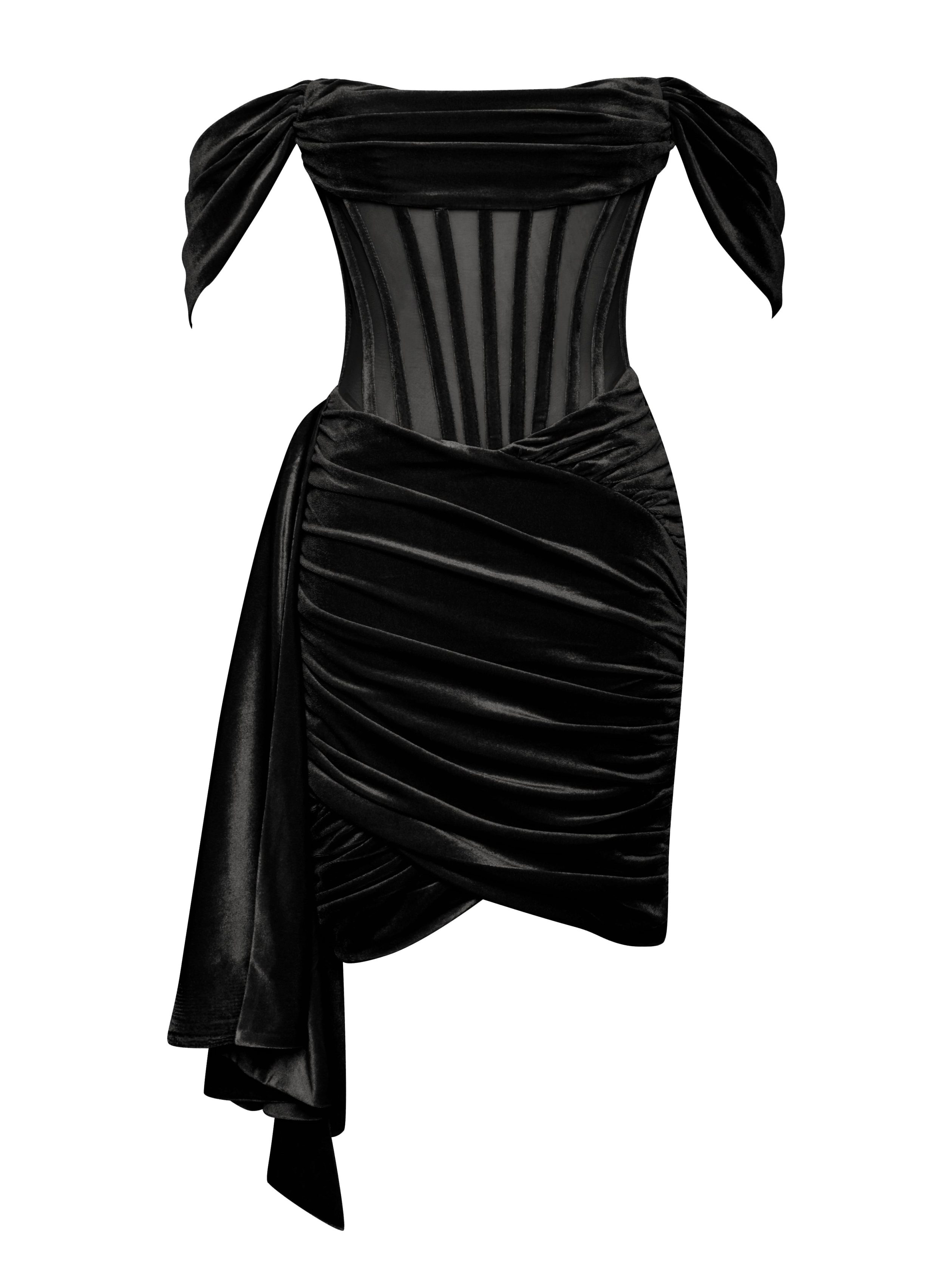 Irisa Black Draping Off Shoulder Corset Dress