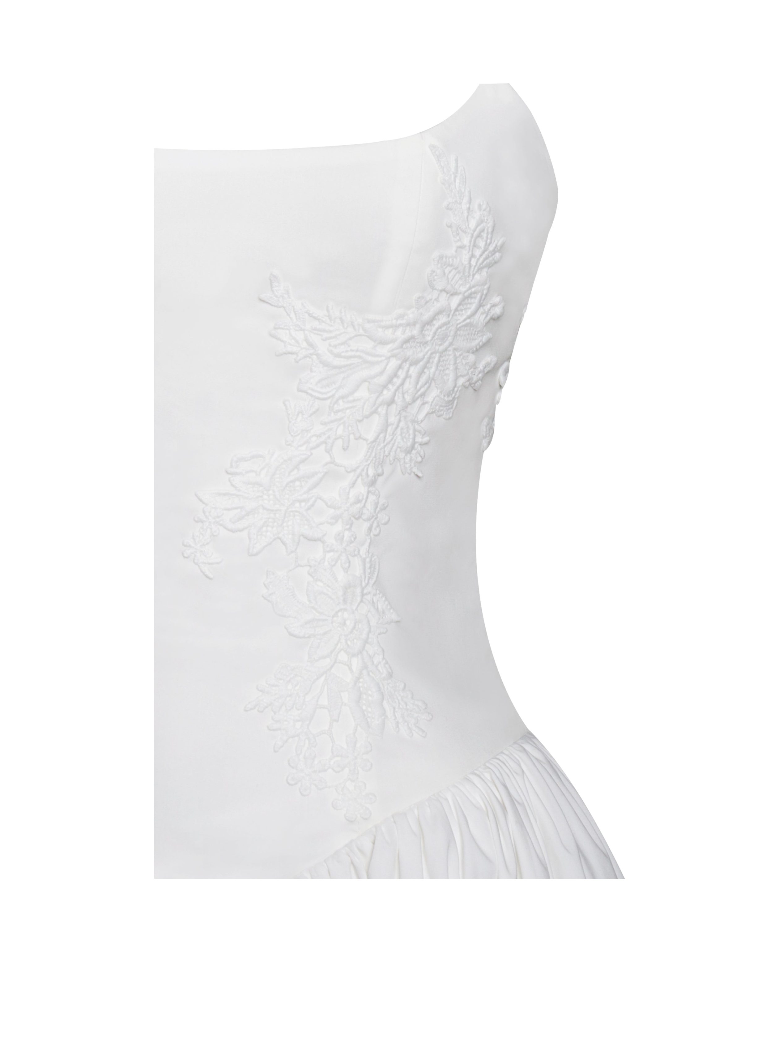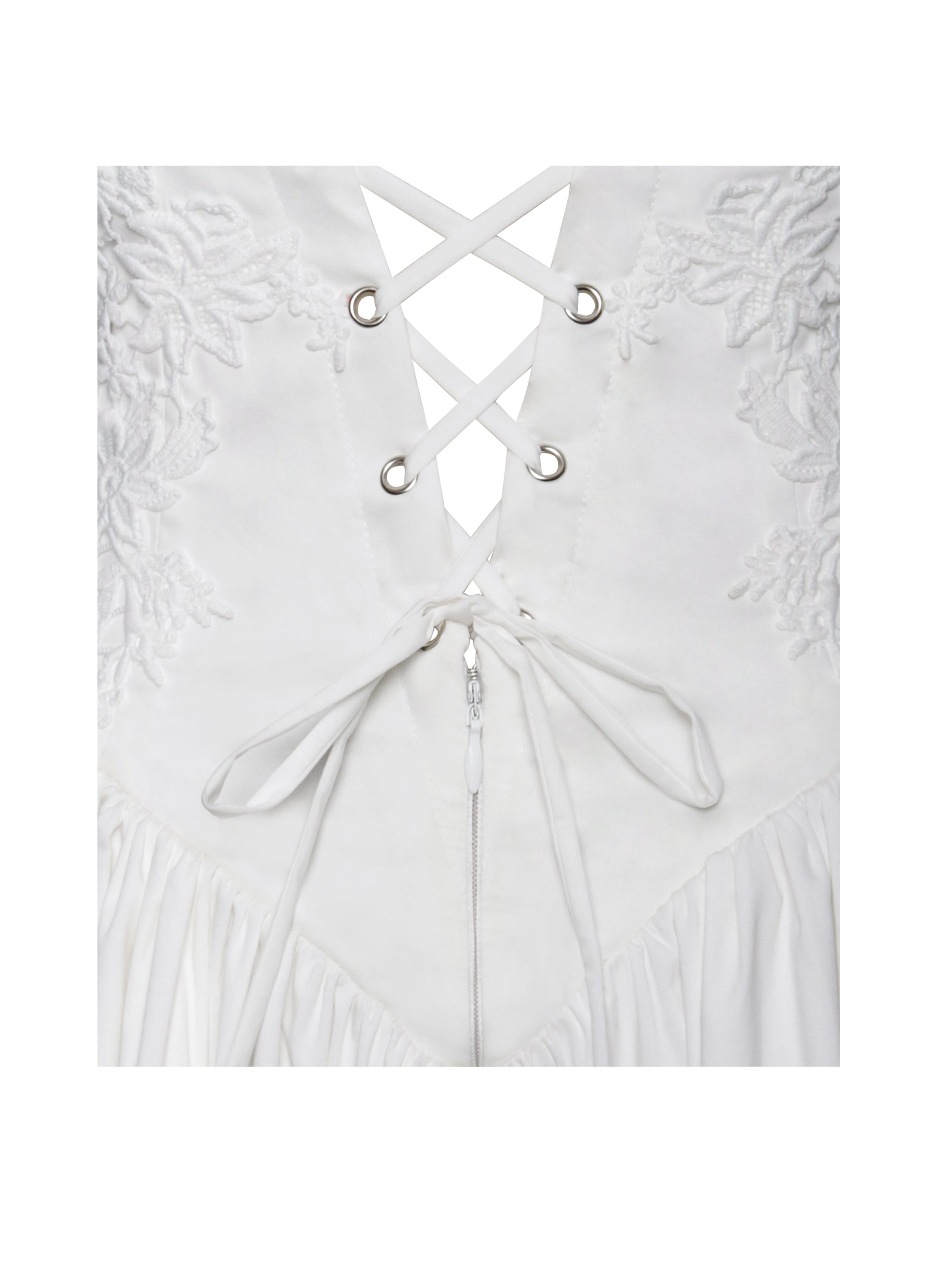 Introducing the alluring Kadi White Cotton Corset Mini Dress. a delightful addition to your wardrobe. Crafted from crisp low stretch eco-luxe Cotton Poplin. this mini dress exudes casual elegance. Delicate lace detailing adorns the garment. adding a touch of charm. The V-shaped waistline and the built-in bones accentuates your figure. while the lace-up back and adjustable stripes ensures a perfect fit. With invisible pockets and mesh bustle inside seamlessly integrated into the design. this dress offers both style and functionality. Available in a stunning option. this dress offers versatility for any occasion. whether it’s a daytime outing or a night on the town.