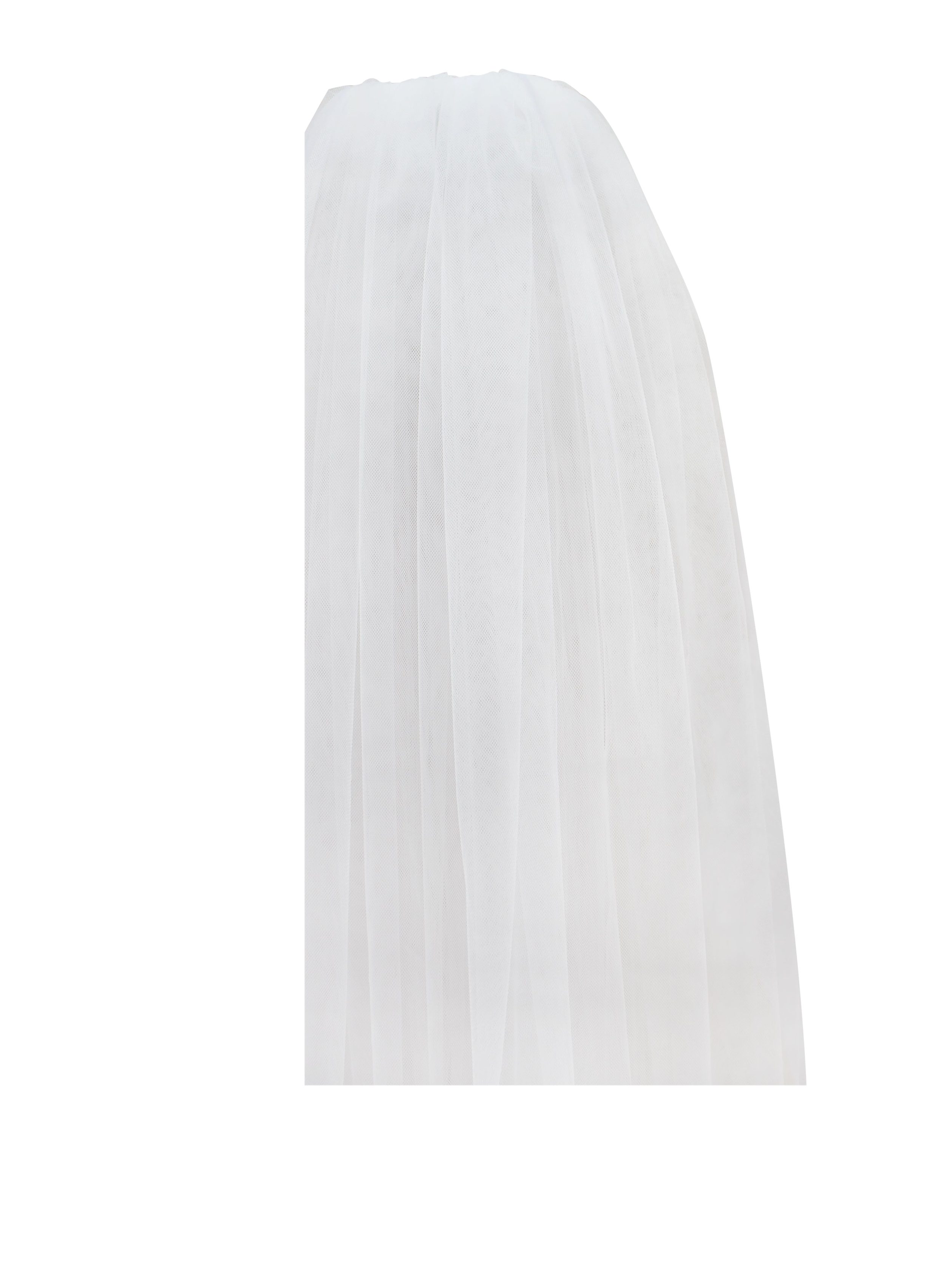 Need a timeless accessory designed to enhance the beauty of your special day? We have the brides covered. Crafted from delicate white stretch mesh. this veil drapes gracefully. adding an ethereal touch to your bridal ensemble. The sheer elegance of the fabric creates a soft. romantic aura. perfect for capturing those unforgettable moments. With its generous length. this veil cascades beautifully. enhancing the allure of your wedding gown. Elevate your bridal look with the simple sophistication of our Long Wedding Veil. making every step down the aisle truly enchanting.