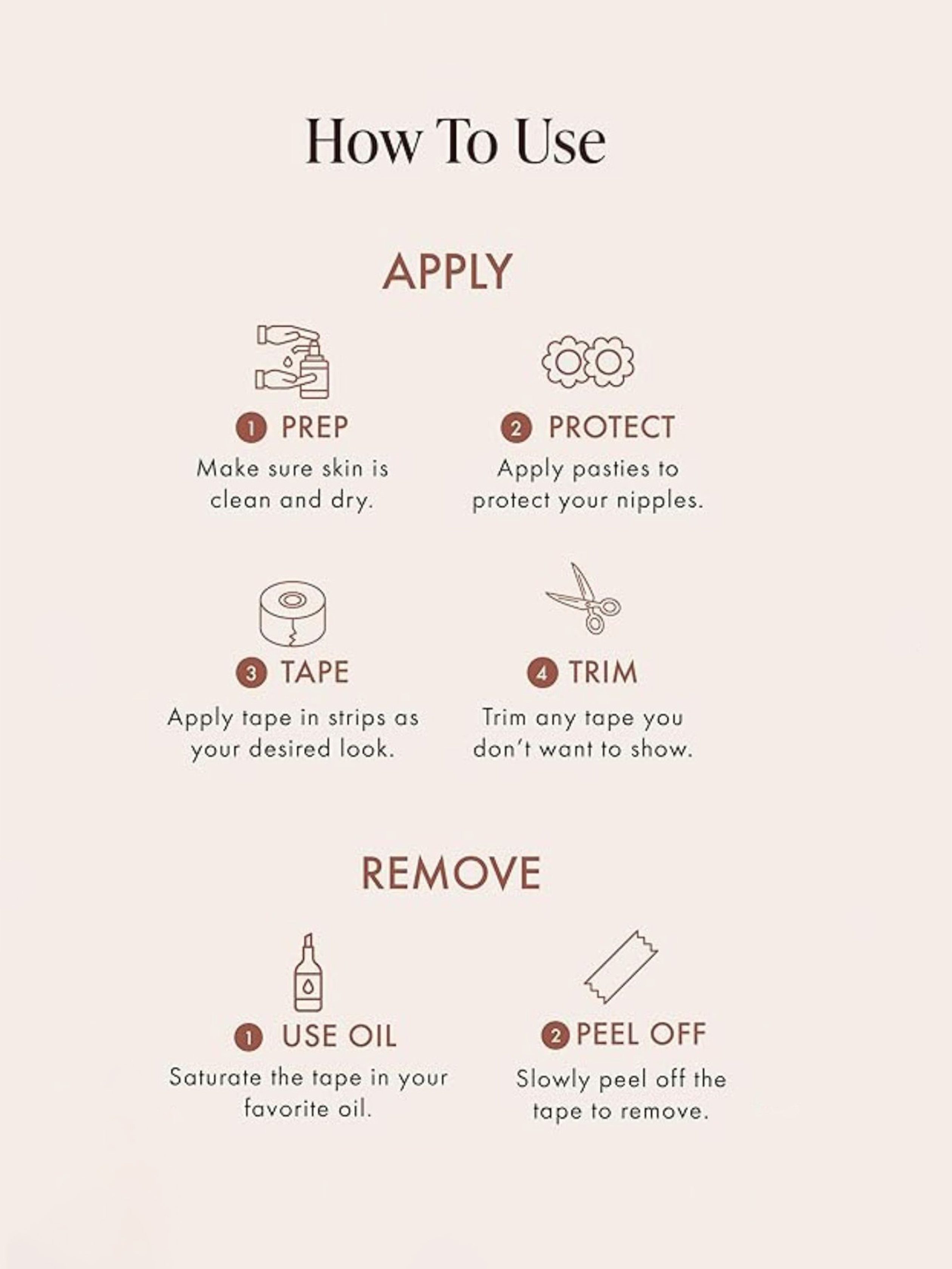 Circle Boob Tape is made of a flexible stretch fabric with an adhesive underside that provides free movement.