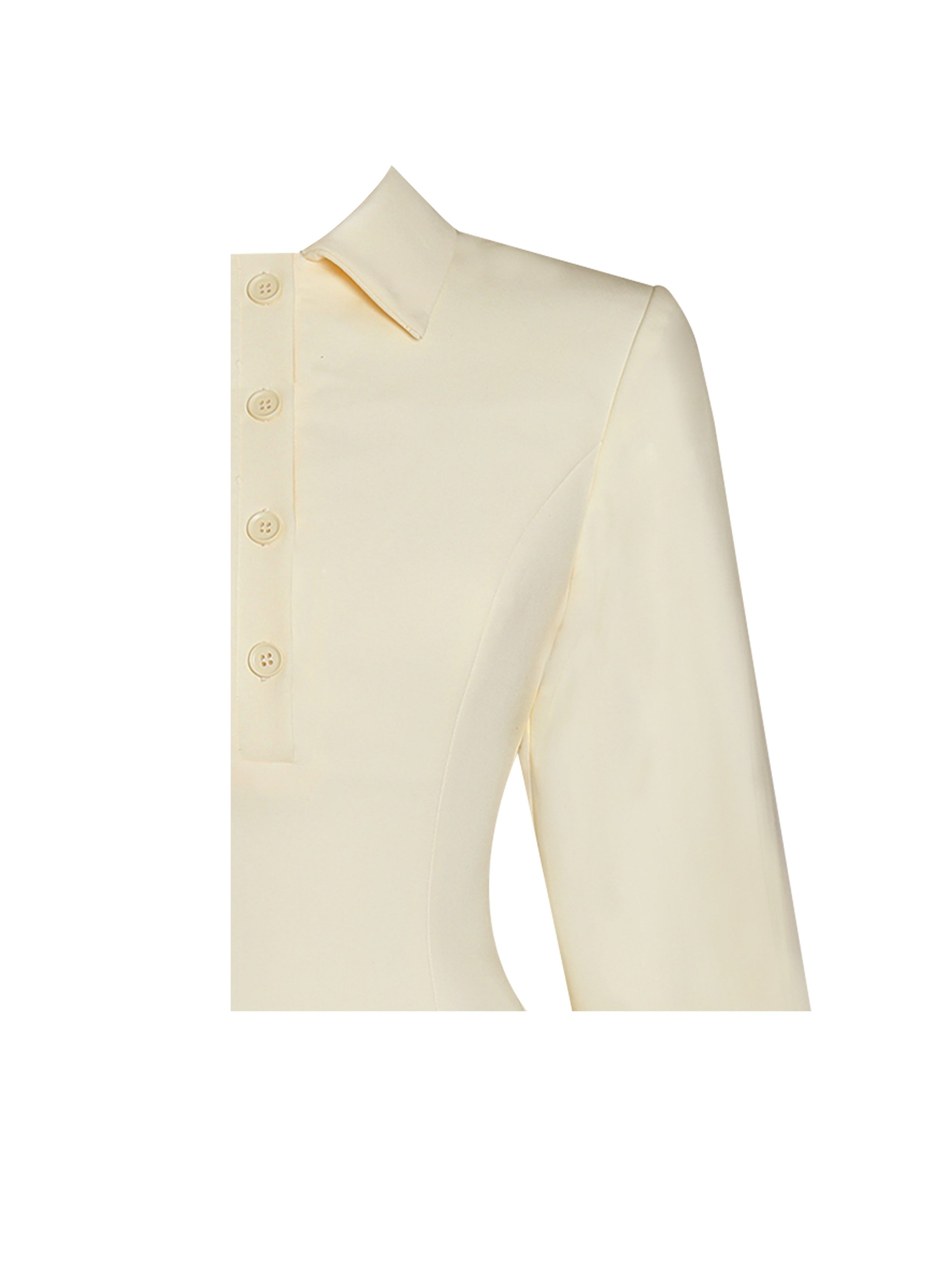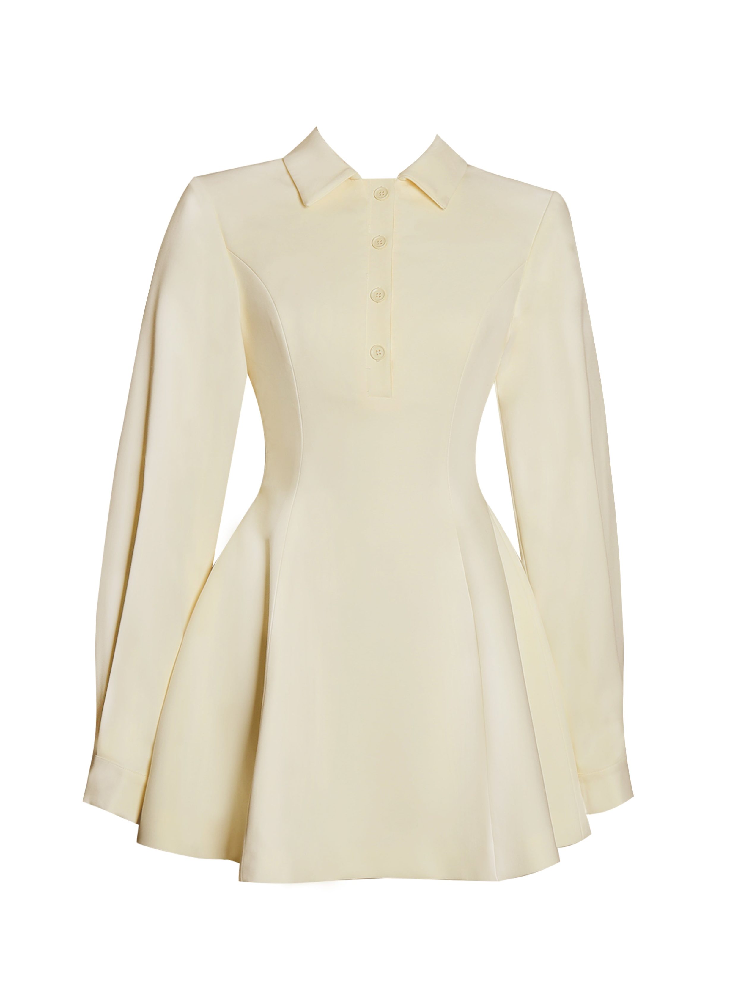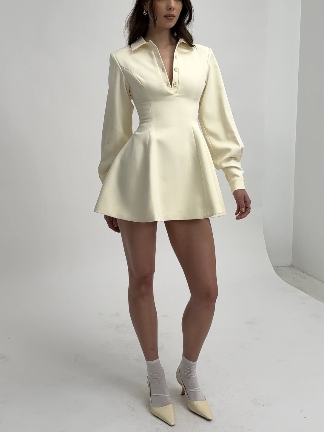 The Obelia Dress blends timeless charm with modern elegance. making it perfect for business casual. spring picnics. daily wear. formal events. or a day on the golf course. Crafted in off white. this Polo style dress features a refined flat collar and long sleeves that exude sophistication. The snatched waist accentuates your figure. while the puffy skirt adds playful volume. Thoughtful details like invisible pockets and an invisible zipper ensure a seamless. polished finish—making the Obelia Dress a versatile wardrobe essential.