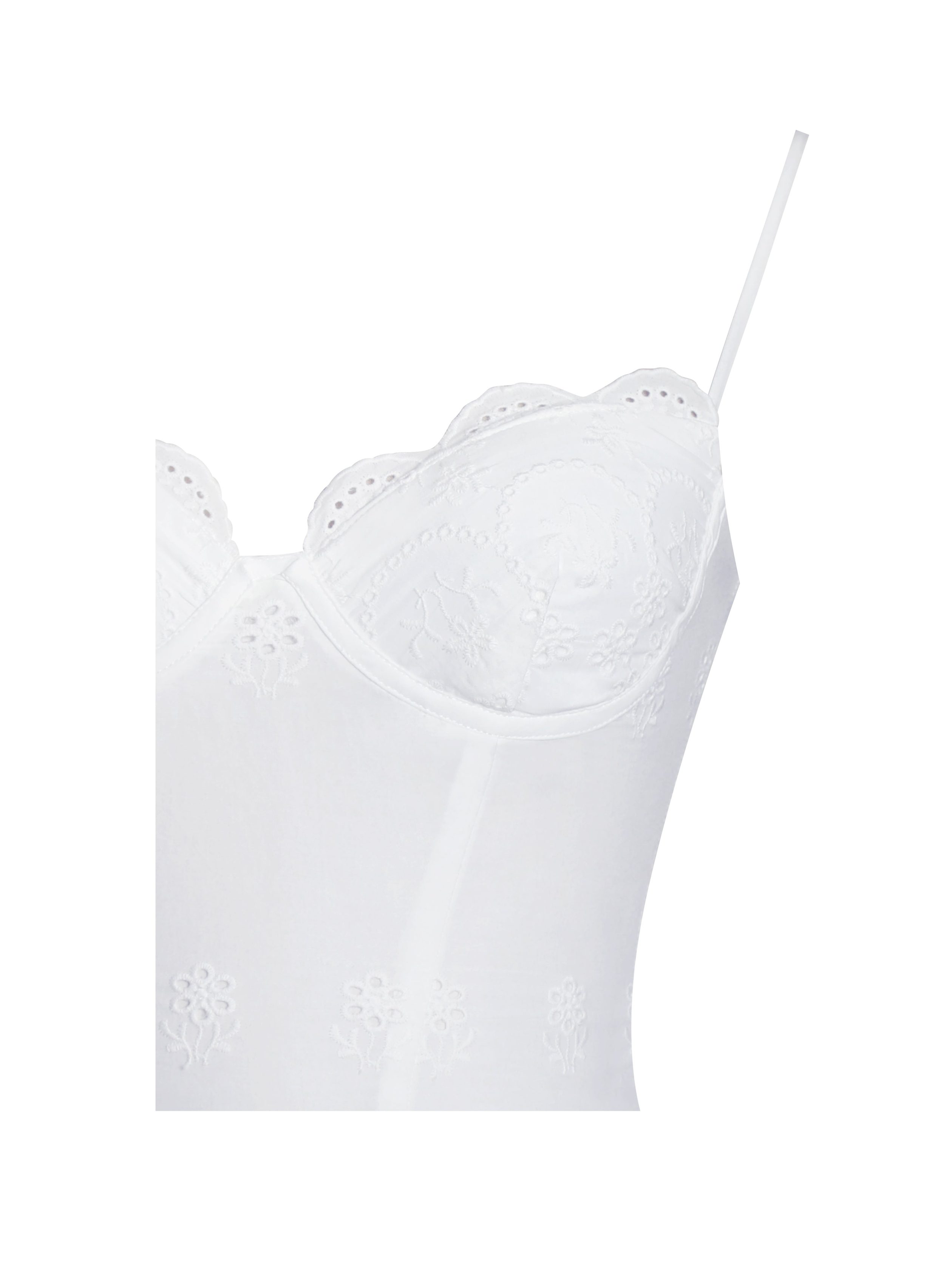 Breezy and romantic. the Oberon Dress is your perfect go-to for summer escapes and everyday charm. Crafted from airy white cotton eyelet. this dress features delicately trimmed cups and laced edges that highlight its feminine allure. The adjustable straps and lace-up back offer a customizable. flattering fit. while the high waistline elongates the silhouette. Fully lined for comfort and coverage. the Oberon Dress is ideal for vacations. picnics. or simply enjoying sunny days in effortless style.