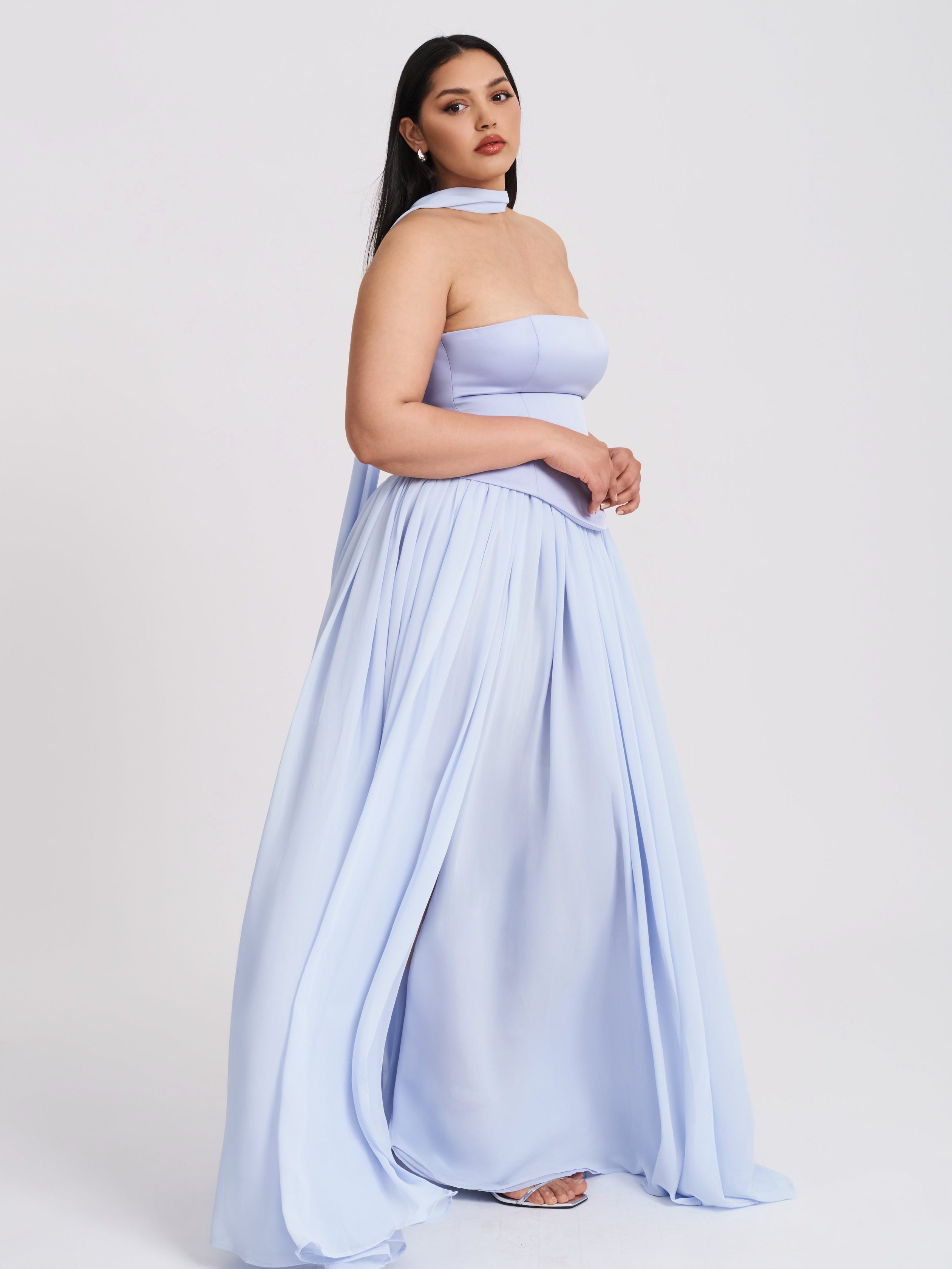 Qianna Baby Blue Peplum Top Drop Waist Chiffon Gown
