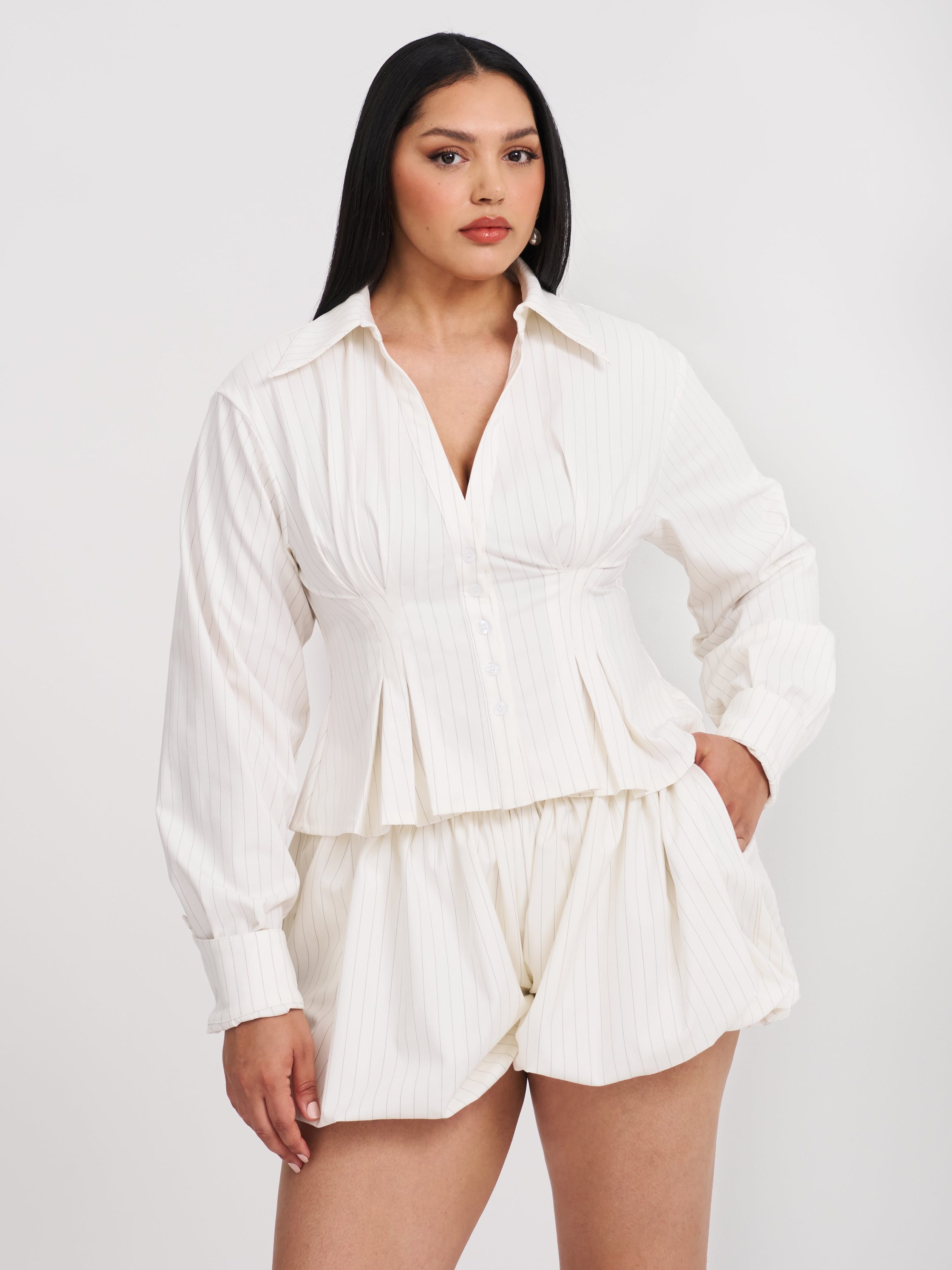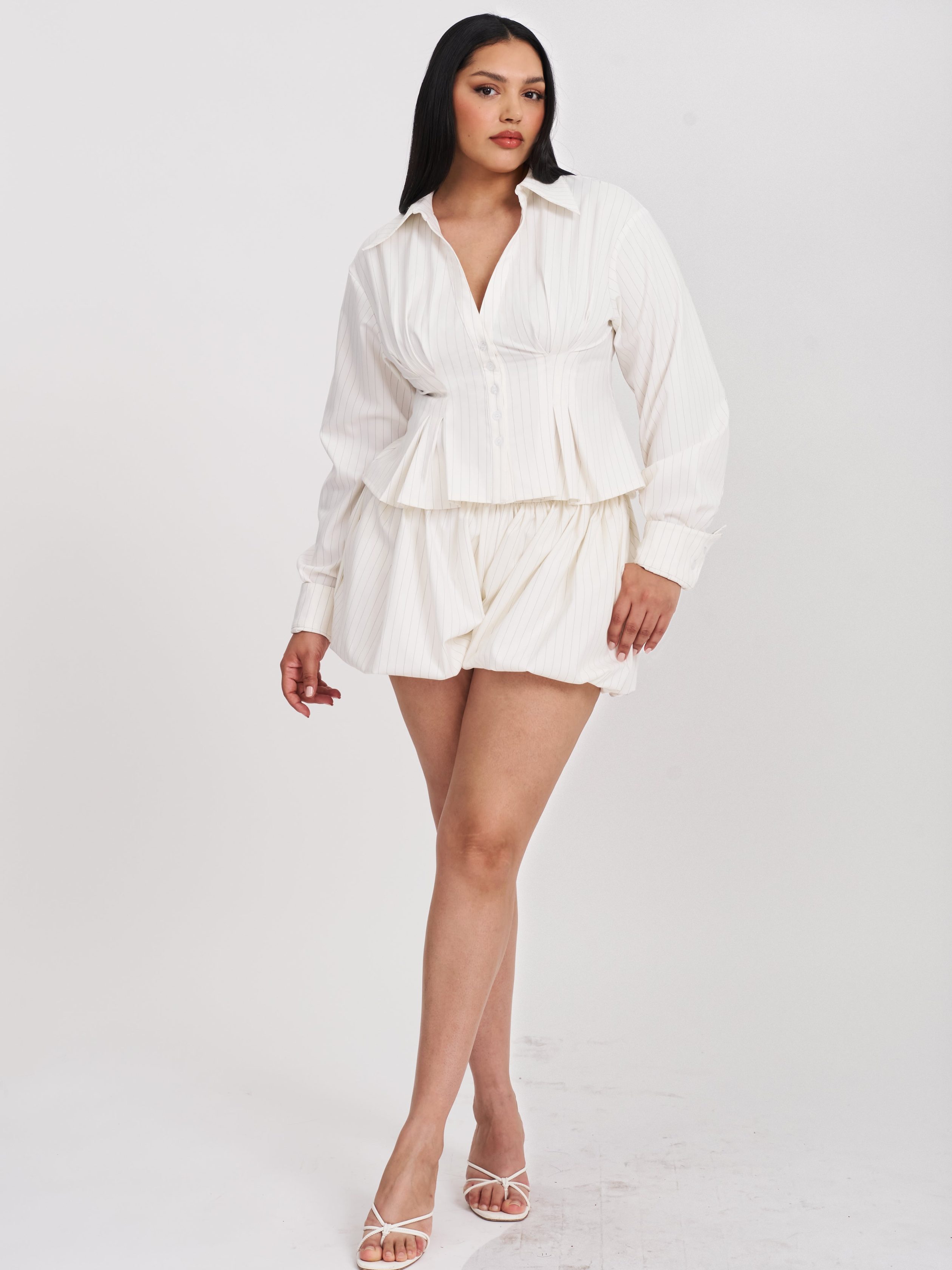 Sylvie White Pinstripe Bubble Shorts