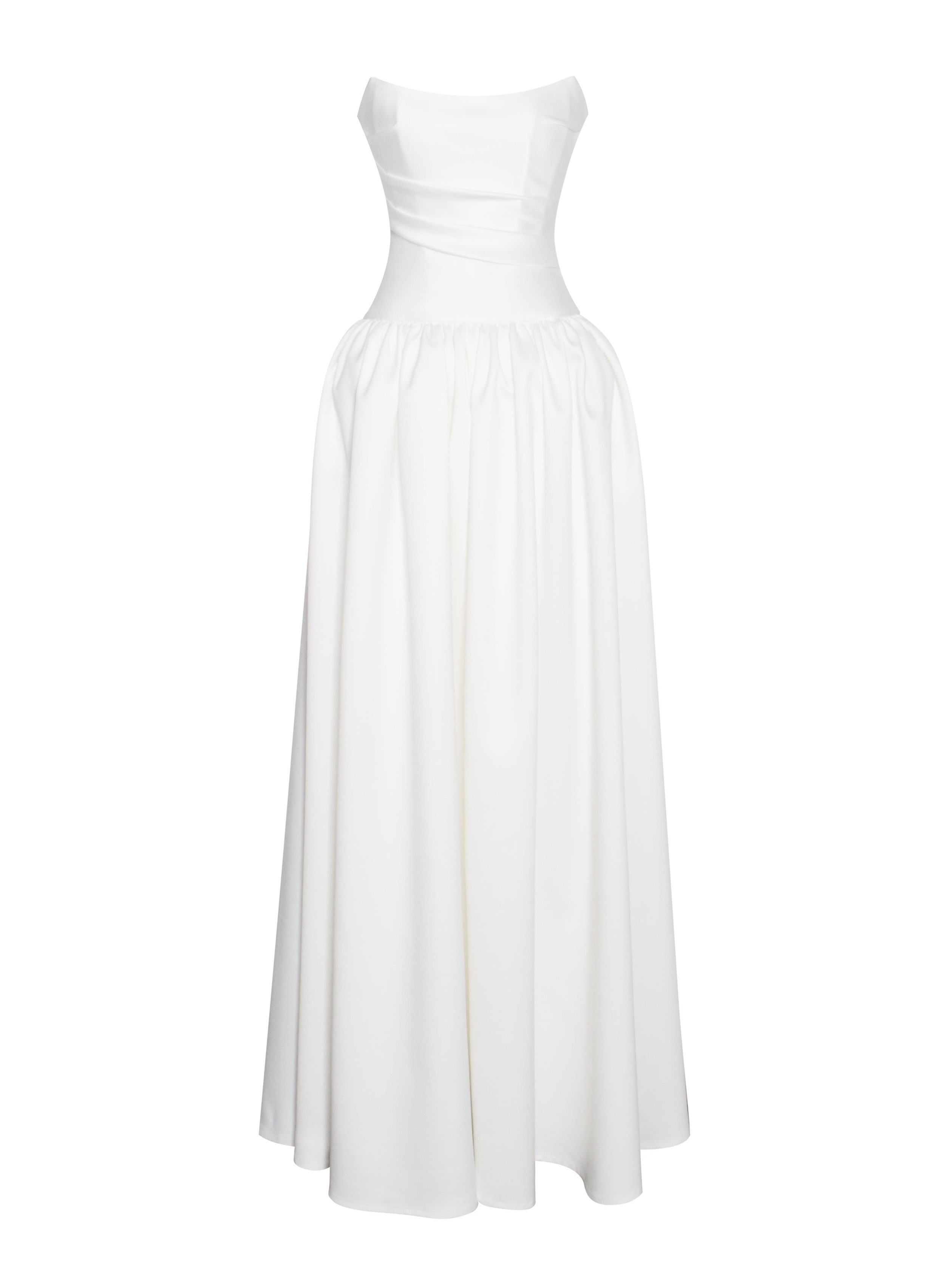 Umay White Drop Waist Satin Corset Bridal Gown