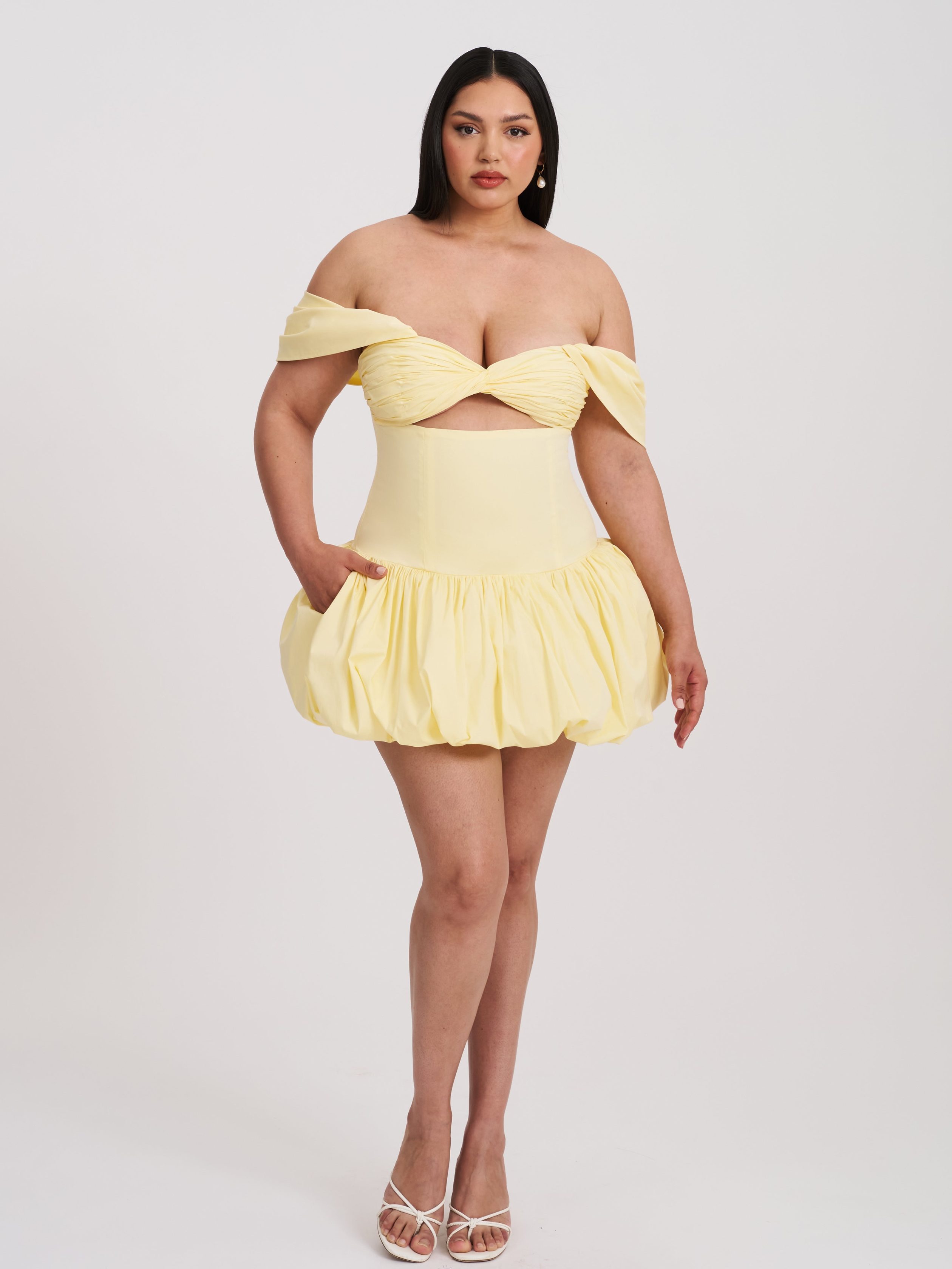 Step into timeless elegance with our Umika dress. a captivating blend of classic charm and modern flair. This off-shoulder mini dress features a drop waist and a unique bubble hem. elevating your style with every step. The pleated cups offer a touch of sophistication. while built-in boning ensures a flattering silhouette. Practicality meets chic with convenient pockets and a fully lined design. Seamlessly slip into this dress with its invisible zipper. embracing both comfort and style effortlessly. Perfect for any occasion. it’s a versatile piece that will leave a lasting impression. It is also available in  and .
