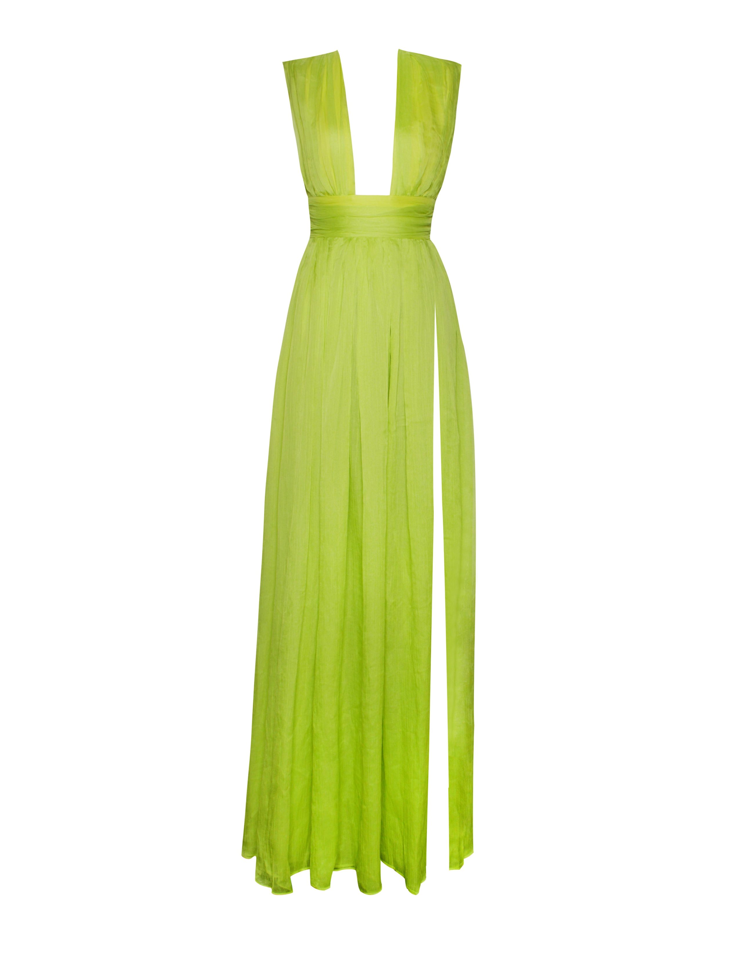 The silk is pleated to create movement and flow while the plunging neckline highlights the bust and waistline. The plunging back and high thigh slit makes this the design ones of our sexist to date. Fully lined and paired with matching underwear. Valley Of Angels is heavenly.